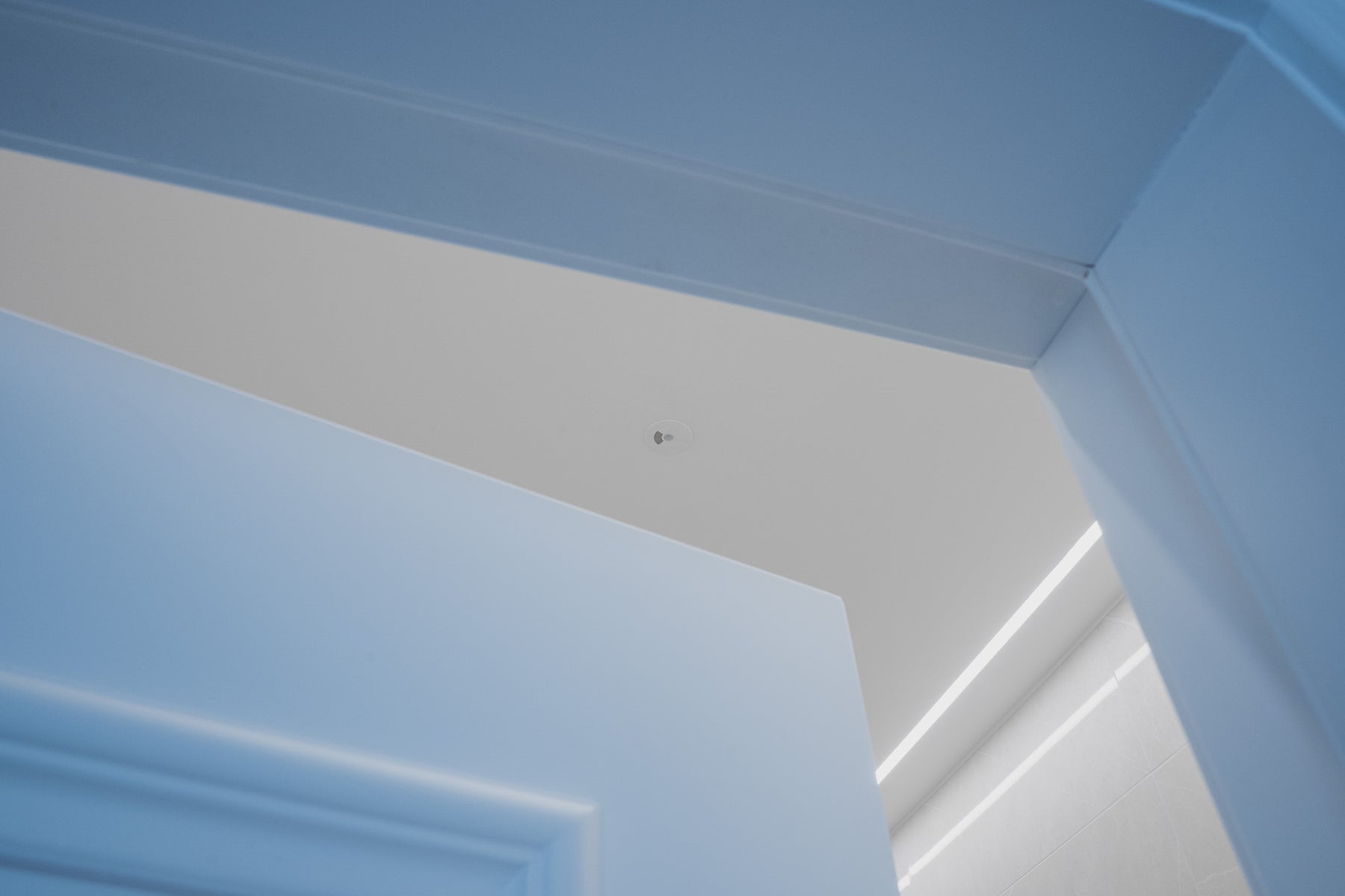 In every bathroom of the property a Motion Sensor 360 - KNX has been carefully placed to detect the moment someone enters. As soon as the user enters the room, the motion sensor triggers the lighting scene and brings on the lights. The timeouts are then carefully commissioned in the room to gently fade the lights out after the room has been vacated and has been empty for a suitable amount of time. Of course, careful testing was done to ensure there are no unwanted timeouts when the room is still in use.