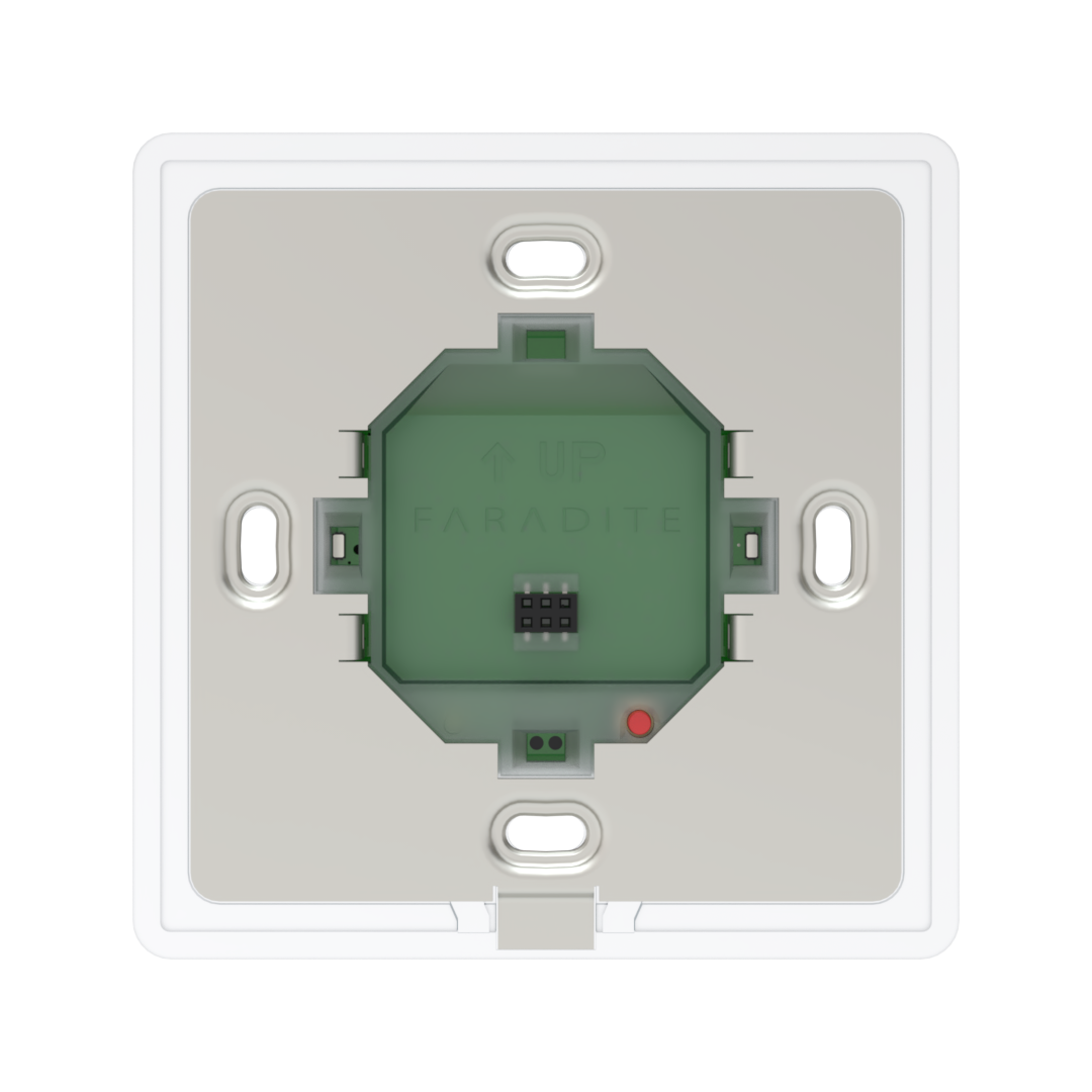 Faradite matt white TAP-1 mounted on a kitchen wall used with Loxone