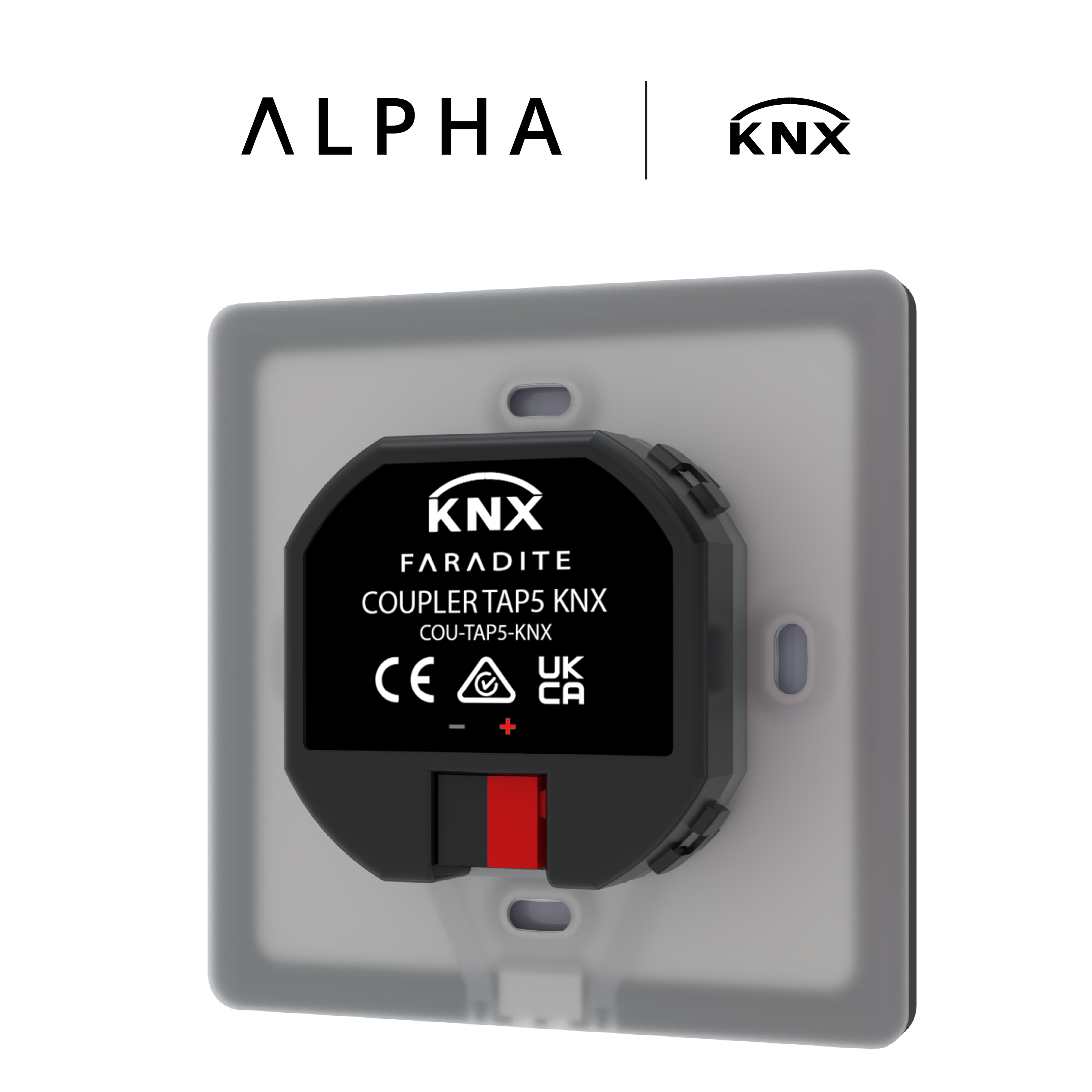 Our range of ALPHA switch plates are beautifully formed plastic front plates coupled with powerful KNX connectivity. The KNX coupler offers KNX integrators a huge range of powerful functions making the TAP-5 ALPHA KNX a powerful and beautiful switch option.